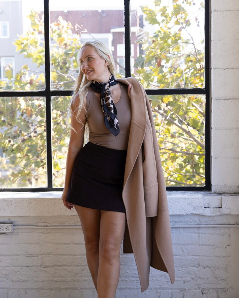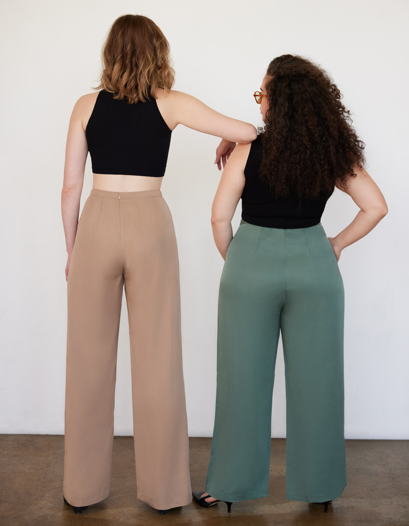 We make luxurious wardrobe staples for women with full hips and thighs. Our pieces sit snug at the waist with more room for curvy bottoms. Each piece has been made using soft, sustainable fabrics in a factory that is third-party certified for ethical working conditions.